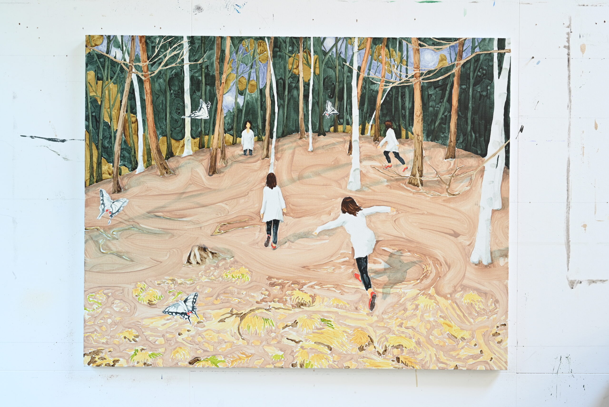 YY ARTSでは、2008年から現在までの作品の中から、自然との日常的なふれあいを描いた代表作「by a forest」を紹介します。混色を避け、一層の筆致で描かれる光あふれる画面は、原良介の特徴のひとつです。15年余にわたる表現の軌跡を、ぜひご高覧ください。